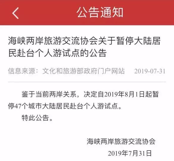 对于台湾民众,我们的血肉同胞,虽然限制了47个城市的自由行,但我们还是手下留情了,并没有要让台湾旅游业进入寒冬。