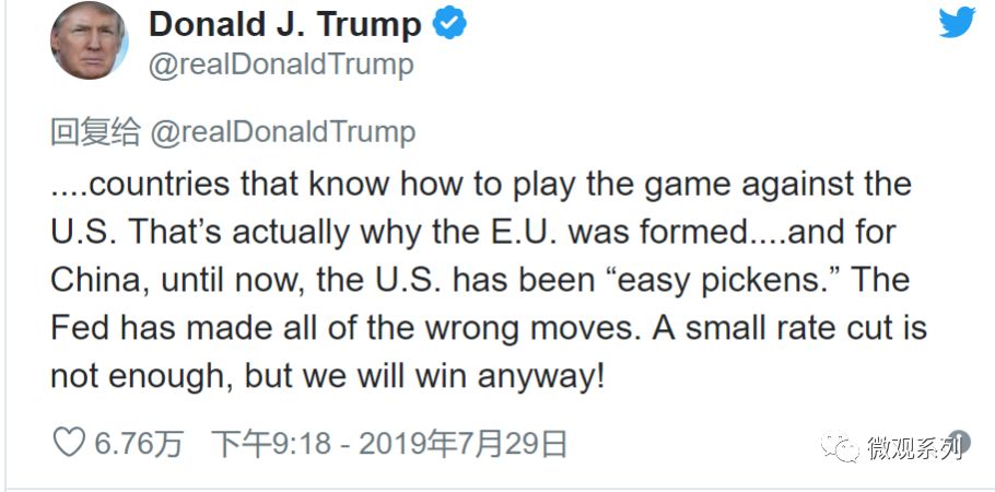 特朗普突然宣布对中国加税,里面还有一层意思,就是威逼美联储主席鲍威尔,开启一个连续的降息周期