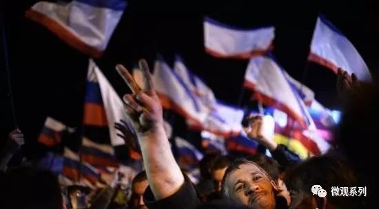 乌克兰东部随即发生动乱,其中克里米亚地区的人民,以超过90%的高赞成度,自愿加入俄罗斯