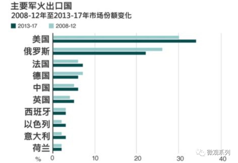 而美国军火出口额,在2013-2017年五年间,增长了10%