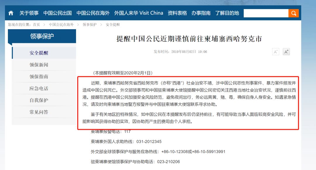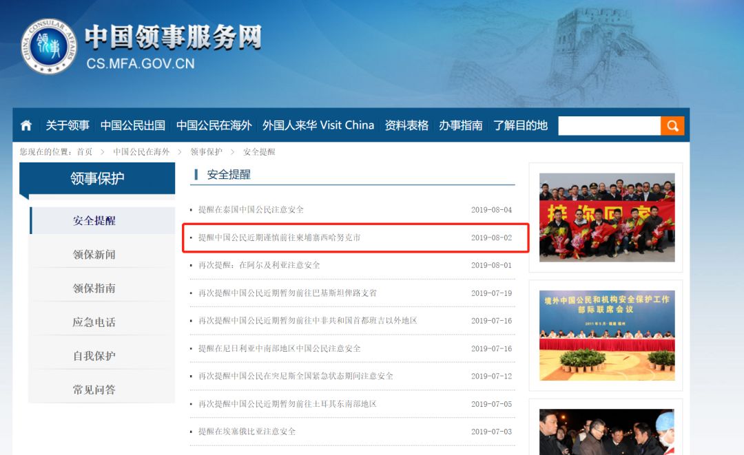 西哈努克是属于提醒中国公民谨慎前往的地方,因为这地方,不稳定。