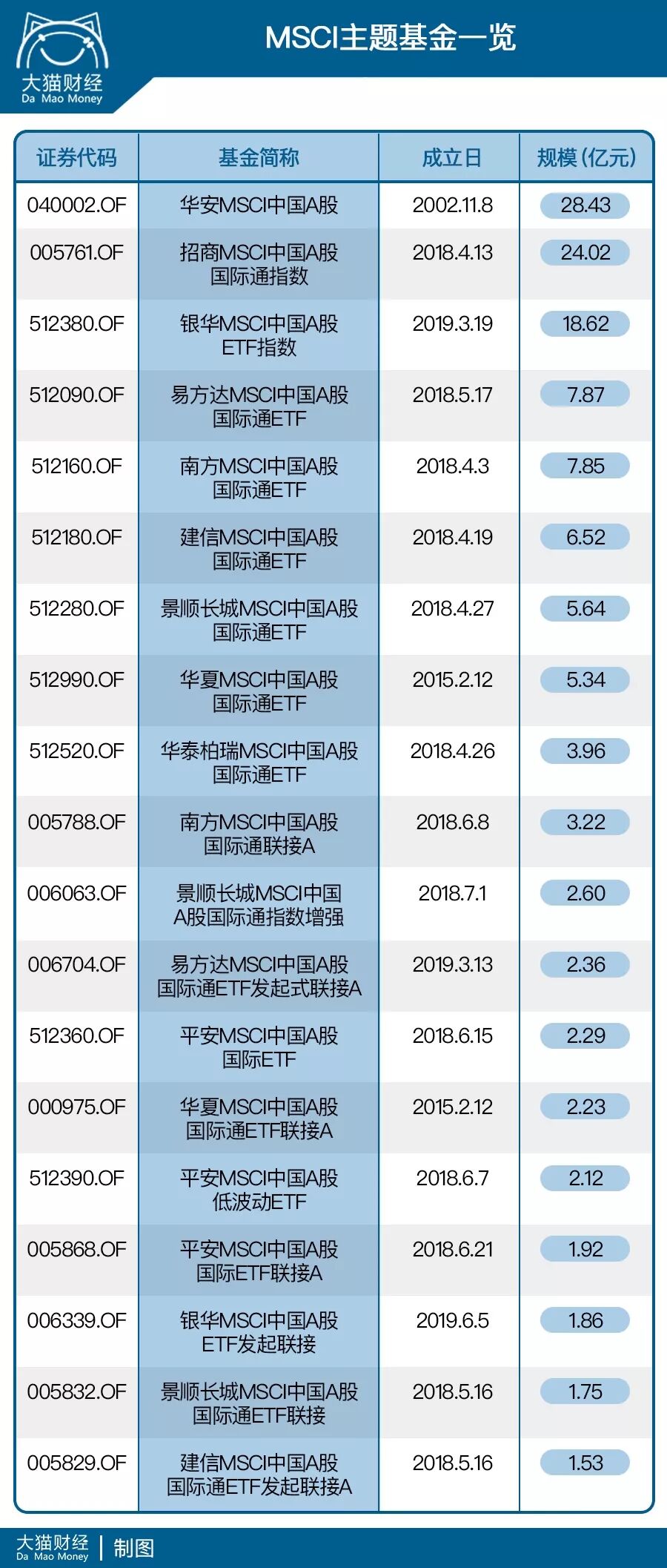 大家可以记住两个原则,一,规模大。二,跟踪好。首先,大家可以根据规模排序,优先选择市值更大的基金,业绩比较稳定,清盘可能很小。然后再看他的跟踪误差,是不是有最新纳入MSCI的标的,一旦外资流入,就会明显受益。