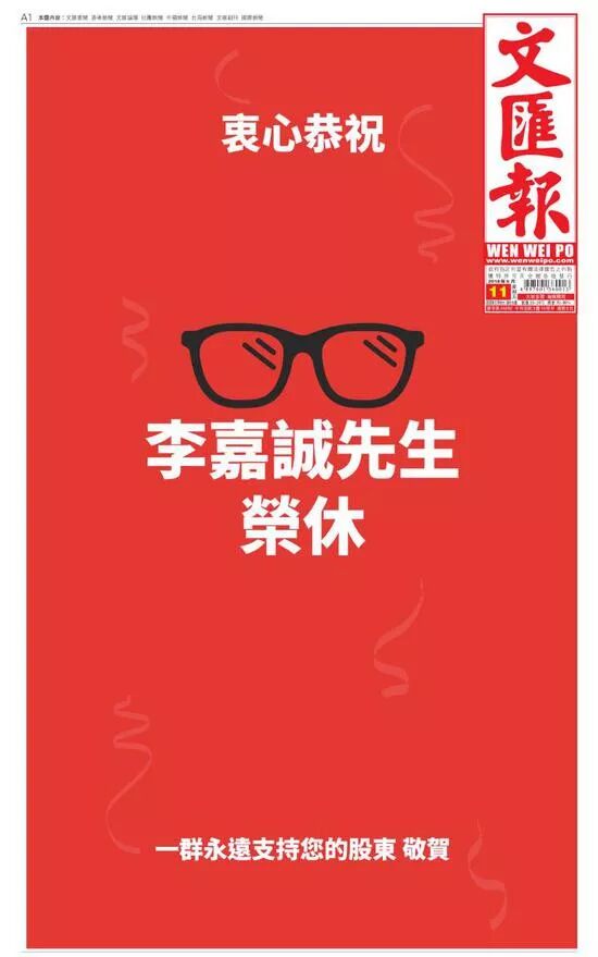 香港富豪每逢大事,总喜欢在报纸发广告,李嘉诚去年退休,就收获了很多祝贺。