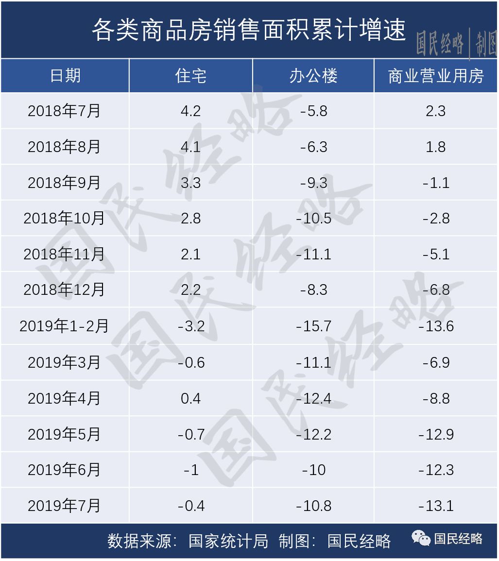 值得注意的是,这其中,销售面积下滑最严重的并非住宅(-0.4%),而是这两种房子:办公楼(-10.8%)、商业营业用房(-13.1%)。