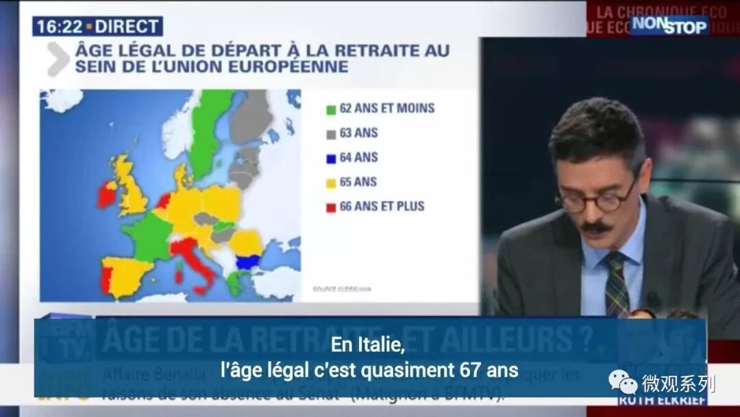 这是欧洲各国的退休年龄,最低的绿色62岁,法国和瑞典