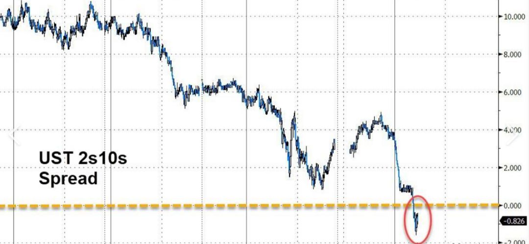 导致美股“崩盘”的关键因素之一,就是美国国债收益率倒挂。8月14日当天,美国10年期国债收益率,跌到了2年期国债收益率的下方,这被称作“反转收益曲线”。而上一次出现这种反转是在2007年,随后发生的事情,想必大家也都知道。