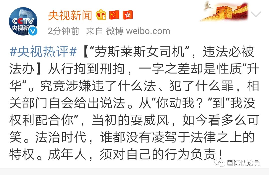 央视新闻也评论道:当初的耍威风,如今看多么可笑。法治时代,谁都没有凌驾于法律之上的特权。成年人,须对自己的行为负责!