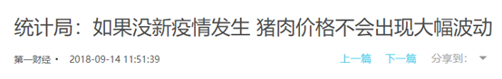 去年8月非洲猪瘟首次突破中国的边境线,触动了中国新一轮猪周期。犹记得去年9月猪肉、蔬菜价格上涨2.5%时,统计局说,这些都是季节性短期因素,猪价上涨还会带动供应增加,如果没有新疫情的发生,猪肉价格不会出现大幅波动。