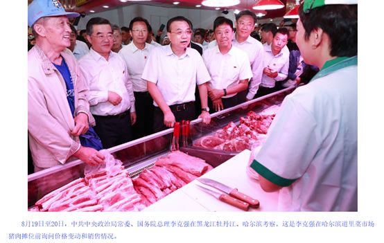 本周一高层领导去黑龙江考察时,还特意跑到菜市场的猪肉档前询问价格和销售。