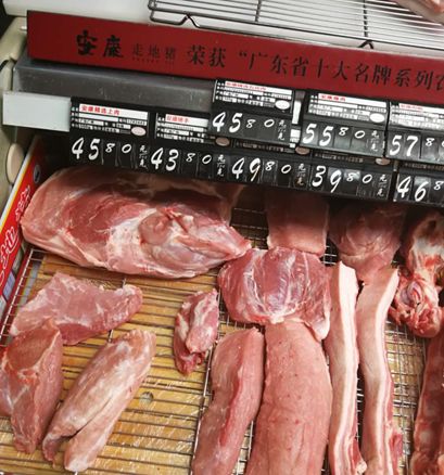 来,再看一下8月20日广州某大型超市猪肉零售价格,品牌猪肉已经来到了40-50元/斤起,有没有为你的钱包心疼一秒钟。
