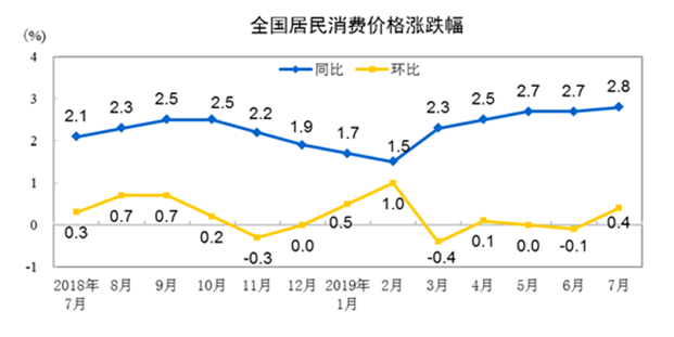 7月中旬猪肉价格一路进击,突破35个月的历史高位来到了18.6元/公斤,助推CPI涨到了2.8%。