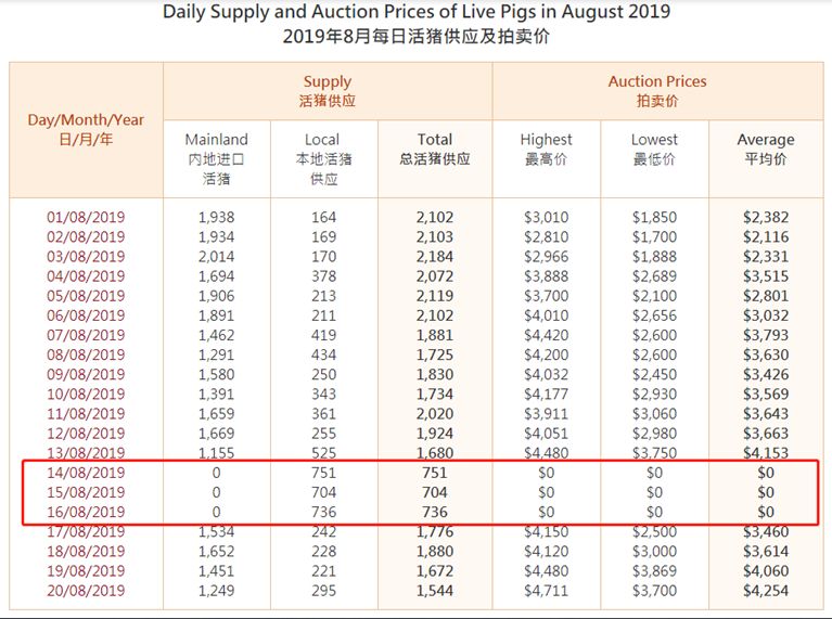 从8月14-16日三天时间里,内地对香港的活猪出现了零供应,香港肉荒,猪肉价格飙涨。