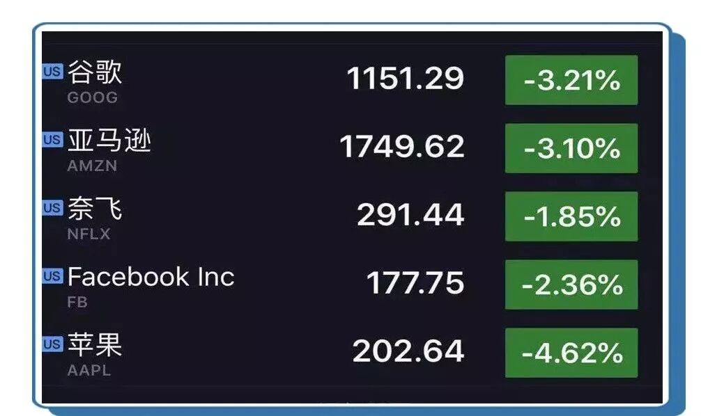 科技股跌幅居前,苹果跌达4.6%,也是“凉凉”的一天了!汽车股受影响较大的有福特汽车、通用汽车,跌幅均接近2%。