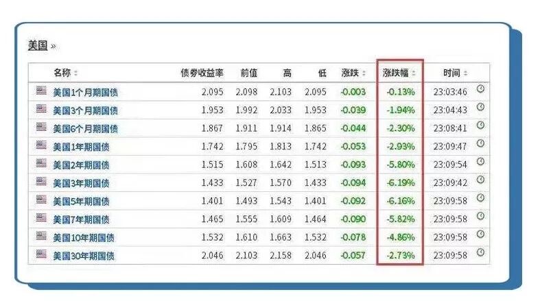 债市方面,美债收益率全线下挫,三年期国债收益率跌幅最大,达到6.19%。