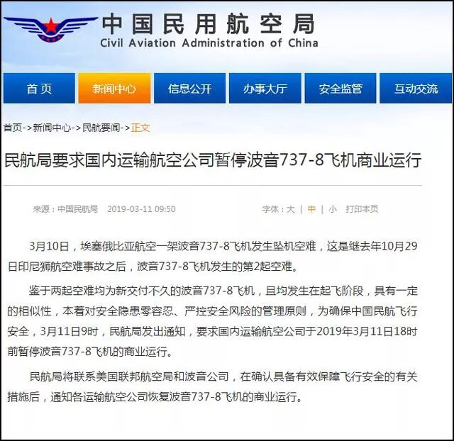 中国政府这一决定产生了很好的全球示范效应,赢得了国人的赞扬,赢得了国外很多民众的普遍的赞誉。最后世界各大航空公司都纷纷宣布停飞这款飞机,这个倒逼美国FAA不得不宣布也加入停飞的行列。