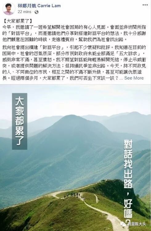 特首林郑月娥今天(8月24日)也在社交网站发文:大家都累了,放下成见,对抗绝非出路,只有沟通和解才有未来。香港过去的发展占尽了国家的红利,没有香港的支柱产业,上海、北京、深圳一样能够做得特别好,香港却不能没有国家,否则,会输得一无所有。 停止暴力、放下成见,珍惜香港的成就,践行一国两制,香港才有希望重新再次出发。