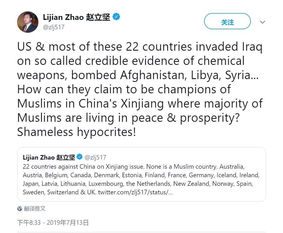 很多人听说赵立坚,可能是从他上个月与美国前驻联合国大使苏珊·赖斯在推特上互怼开始的。事情原委是这样的——7月13日,赵立坚通过推特呼应37国对中国新疆治理的支持,批评西方22国对中国新疆政策的抹黑。