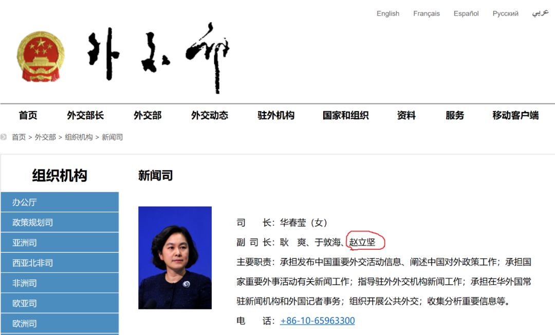 这个周末,细心的网友发现,外交部官网“组织机构”一栏更新显示,外交部新闻司多了一位副司长——赵立坚。赵立坚在国内可能没有华姐姐那么出名,他在国外可是响当当的中国外交官,甚至有国外媒体把他和美国总统特朗普做比较——作为第一批在推特上开设个人账号的中国外交官,赵立坚在推特账号已有20多万粉丝。
