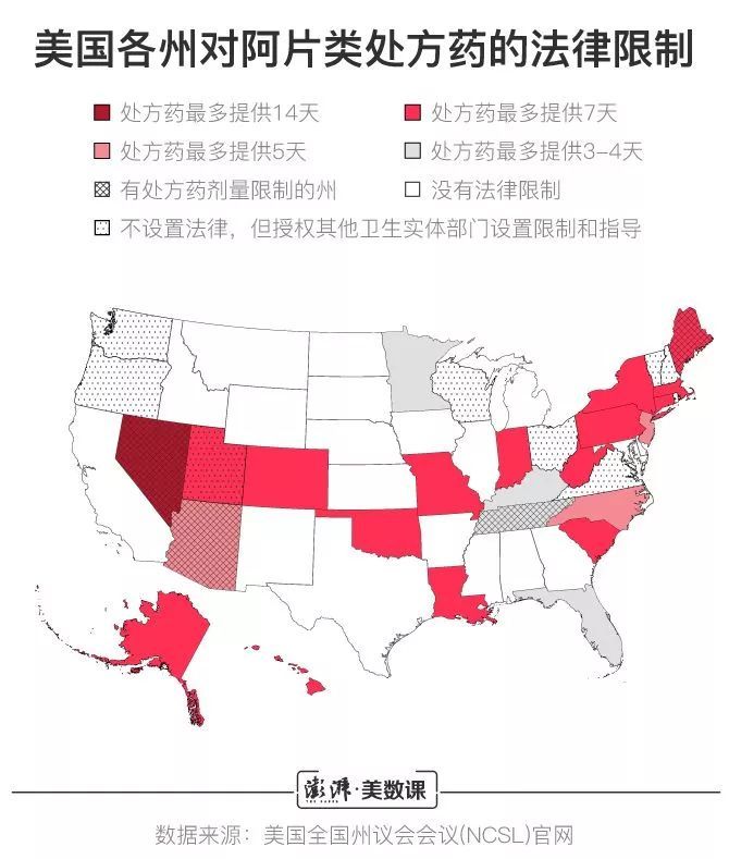 (图为美国各州对阿片类处方药的法律限制 图源:澎湃新闻)