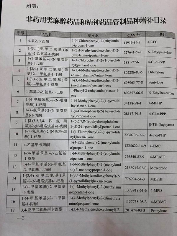 (图为《非药用类麻醉药品和精神药品管制品种增补目录》 图源:澎湃新闻)