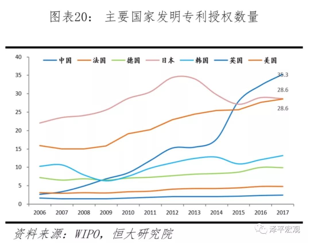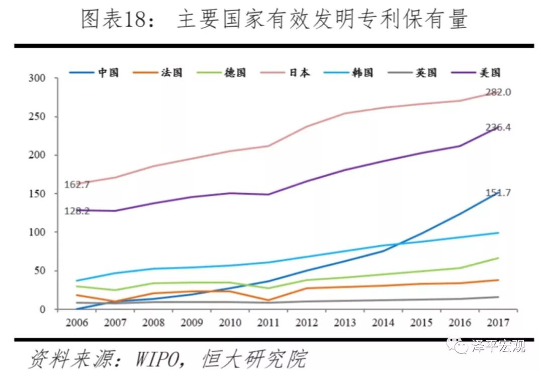 根据世界知识产权组织(WIPO)统计,截止2017年底全球共有1043万件有效发明专利,其中保有量排名前五分别为日本(282万)、美国(236万)、中国(152万)、韩国(99万)、德国(67万)。从增量角度,2016年各国发明专利申请量排名分别为中国(131万)、美国(53万)、日本(46万)、韩国(23万)、德国(18万),而专利授权量排名分别为中国(35万)、日本(29万)、美国(29万)、韩国(13万)、德国(10万)。中国近年来在专利方面发力明显,在申请数量上已经大幅超越美国、日本,授权数量略超美、日,在专利的授权率与实际转化方面中国仍有较长的路要走。