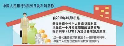 8月25日,央行发布公告称,自2019年10月8日起,新发放商业性个人住房贷款利率以最近一个月相应期限的贷款市场报价利率(LPR)为定价基准加点形成。其中,首套商业性个人住房贷款利率不得低于相应期限LPR,二套商业性个人住房贷款利率不得低于相应期限LPR加60个基点。