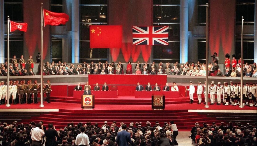 那晚12点40分,查尔斯王子和彭定康等人抵达维多利亚港皇后码头,登上英国皇室游艇不列颠尼亚号。不列颠尼亚号在大雨中驶离,很快消失在南海夜色之中。