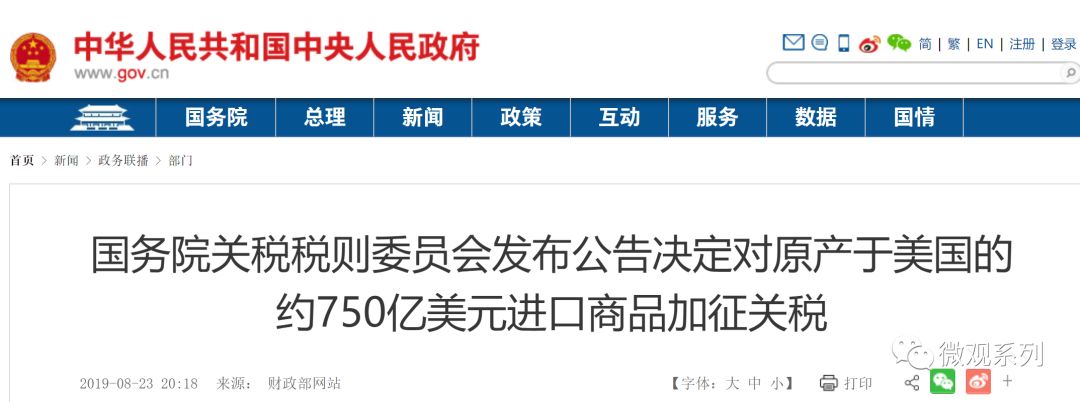 周五晚间20:13分,中国关税委员会突发公告,决定对自美进口的750亿美元商品,加征关税