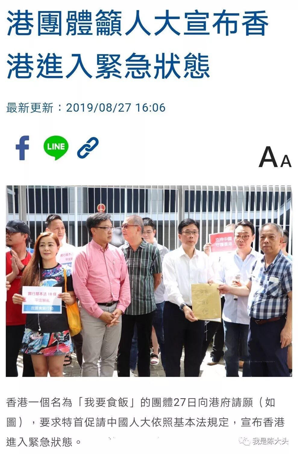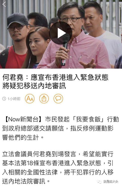 今天,香港旅游界、酒店业、导游工会代表到政府总部请愿,要求特首向中央政府提出引用基本法第18条,要求宣布进入紧急状态,引入全国性法律,疑犯送内地审讯!建制派议员何君堯说,自反修例风波发生以来,已先后有40多次暴力冲击,严重影响经济,这已符合基本法18条所说的紧急状态,就应该按照规定,宣布香港进入紧急状态,把中国的反恐、国家安全法、甚至武警相关条款引入香港。