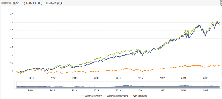 不过出于资产多元化的原则,B君留了个心眼,既然自己家庭的工资性收入、非股票财产性收入全是人民币,那么股票投资就该分散到非人民币资产上。所以2010年4月份某基金推出QDII的“**纳斯达克100”,他就开始倾力投资。