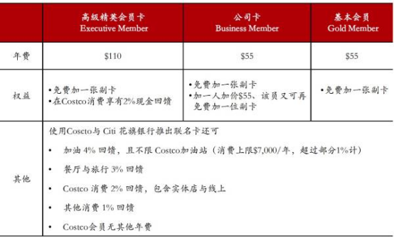 (Costco不同的会员卡项目及享受的相应权益)