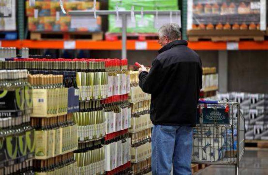 (Costco门店内,一位顾客在挑选商品)