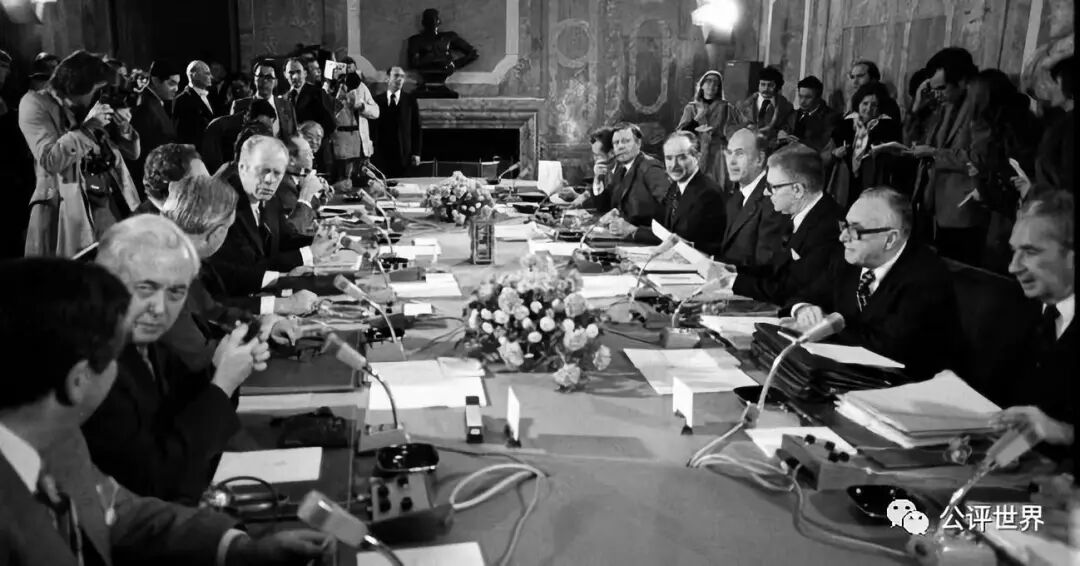 在这种情况下,德斯坦开始积极推动首脑会议的召开,法美一拍即合。1975年在法国的朗布依埃,召开了西方六国首脑会议。