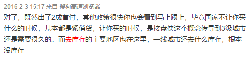 后面的结果大家也知道了,我们在2015年迎来了轰轰烈烈的去库存行情,他88万卖出的房子涨到了300多万。