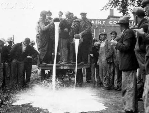 这里要说到美国的“倒牛奶”的故事,在美国经济大萧条时期,大量的牛奶滞销,只能倒到臭水沟。