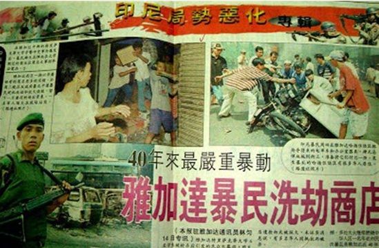1998年5月13日傍晚的印尼首都雅加达,宁静平和的街道上突然冲进来一辆又一辆卡车,载满了一群身材彪悍凶狠的印尼壮汉,他们手持各种专业工具,下车后冲向一家又一家华人商店等商业场所。