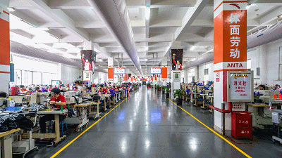 (图为繁忙的安踏生产车间,晋江坚持实体经济为根令人敬服)