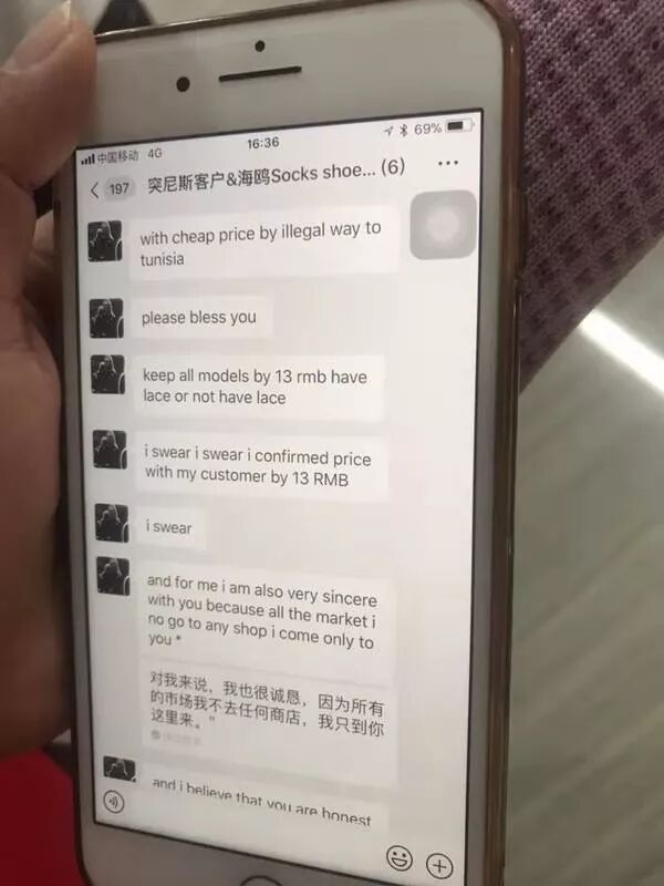 (图为另一名来自北非突尼斯的客户与丁婉玉通过微信沟通,点名“只要你家的货”)