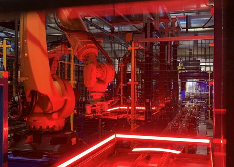 福耀玻璃美国有限公司的玻璃生产线。新华社发 王铁汉摄