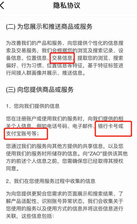继我们说的话不属于自己,而属于互联网公司之后,我们的脸都不属于自己了。只要你玩了这个软件,只要你同意了用户协议,那么你上传到ZAO的所有肖像资料,都属于ZAO了......不仅如此,在隐私协议中,ZAO还要求你同意它采集用户的电话、邮件、位置、设备、以及交易信息、银行卡和支付宝账号。