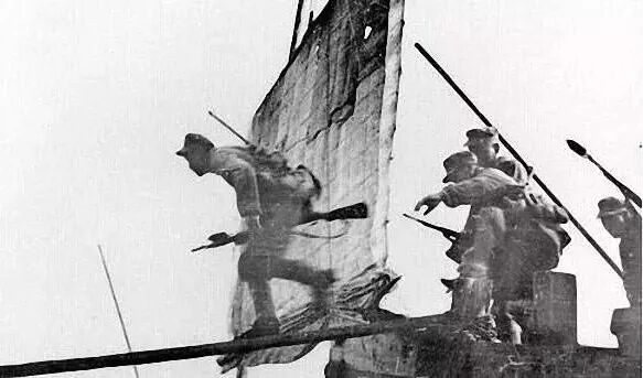 当晚,这支敢死队拉满帆篷,趁着东北风,在敌机的密集扫射下最先登陆长江南岸,成了“渡江第一先锋营”。