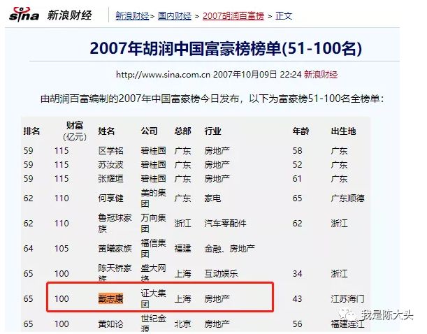 然后你二蛋哥说了一句意味深长的话:同一个世界,不同的结果,不同的未来。7年前,二蛋哥刚入私募,听说圈子里面有不少牛人,那时候的戴志康绝对算一个。1992年,戴志康在海南成立了中国第一家公募基金公司——富岛基金公司开始炒股票和房地产。1993年,由于政策调控,戴志康破产,后面又继续坐庄炒股,爆赚上亿。然后进军房地产业,开发了多个楼盘,又玩起了阳光私募,风投等等,反正金融圈里的业务都没落下,也成为了金融圈的传奇人物。2007年,戴志康登上胡润百富榜,身价超过百亿元,可谓风光一时。之后几年,由于投资失利,2012年、2013年,证大的阳刚私募接连踩雷,不得不清仓,同时为了东山再起,戴志康在房地产和股市之间选择了继续做股市,错失了2015年房地产大涨的一波行情。2015年,戴志康把集团旗下地产上市公司上海证大卖了,彻底退出了地产行业,专心的做起来私募、互联网金融和风投。先后推出了“证大速贷”、“证大农村小额贷”、 “捞财宝”等;成立了上海证大财富、北京捷越联、证大微金公司等。趁着政策的红利,在2015年到2017年底,上海证大可谓风光一片。2018年3月,中美贸易摩擦开始了,这一年资产市场有了大洗牌,金融去杠杆、去产能渐入快车道,上千家P2P关门,私募逾期,整个财富管理行业风声鹤唳。