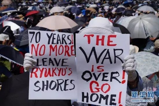 (图为民众手举标语要求美军离开冲绳,驻日美军同样风波不断,美国不得不考虑其影响)