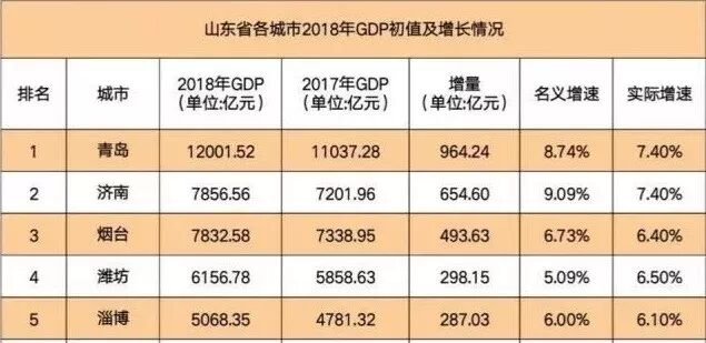 (图为2018年山东省GDP前五名的城市)