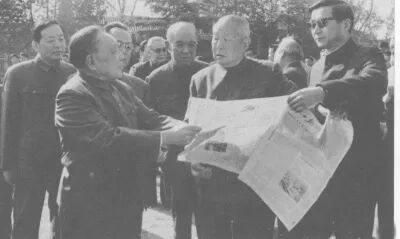 (图为1984年,邓小平在会见沿海部分城市座谈会代表后,看当天《人民日报》刊登的《蒸蒸日上的深圳经济特区》专版 图源:广安日报)