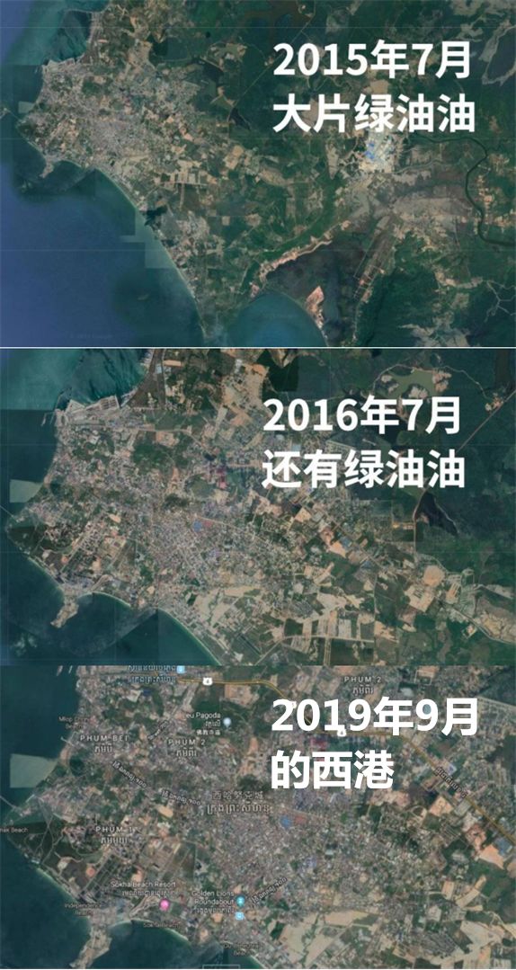 如今的2019年9月截图,西哈努克城区已经密密麻麻布满了建筑物。