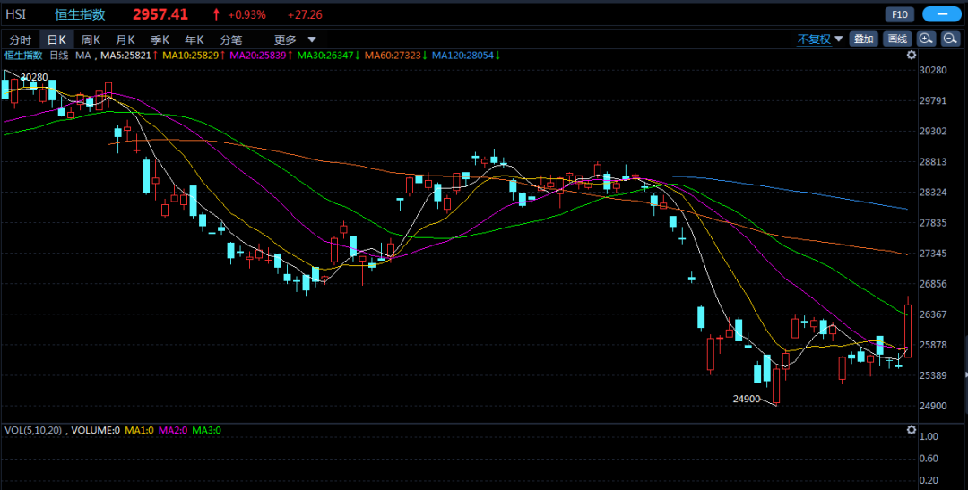 上图是恒生指数走势,9月4日下午盘中出现大涨,全天上涨接近1000点,原因是HK传来好消息,局面有望缓解。