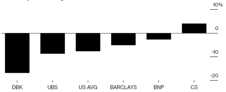 此后,德银又先后于2017年和今年初遭受美国和英国针对其洗黑钱监管不力的巨额罚款。至此,德银在与美国投行彻底拉开距离。