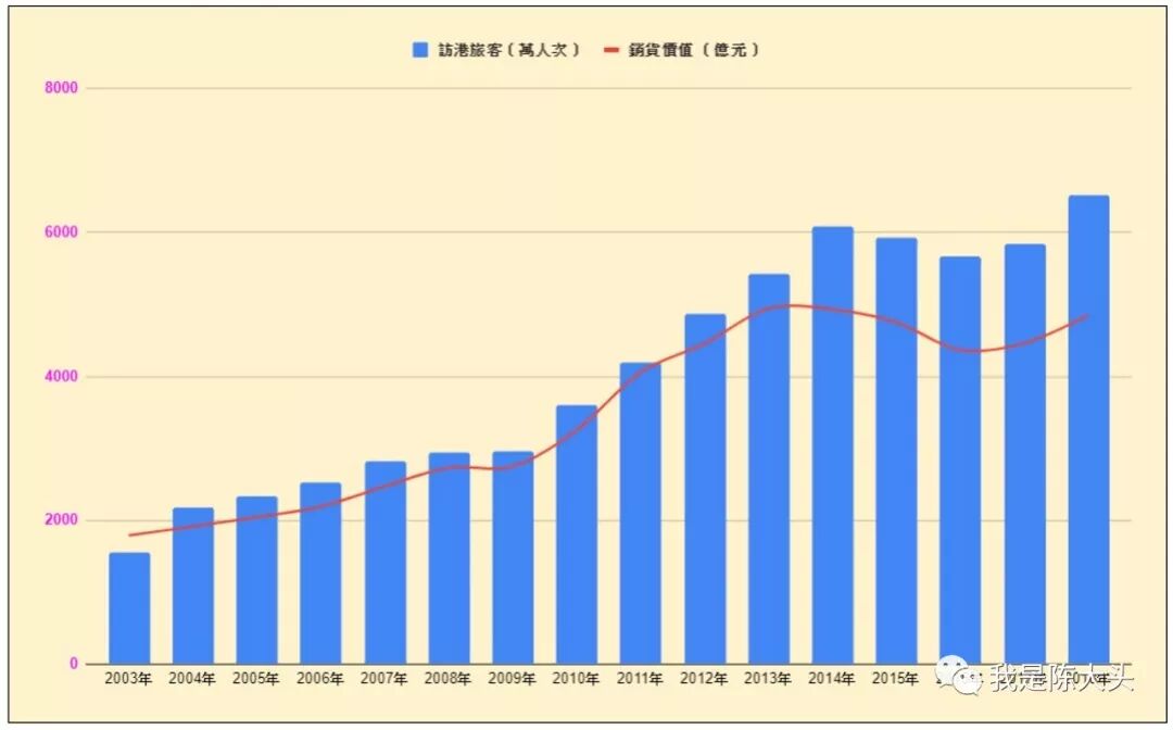 内地访港旅客逐年上升,而零售业的销售也从