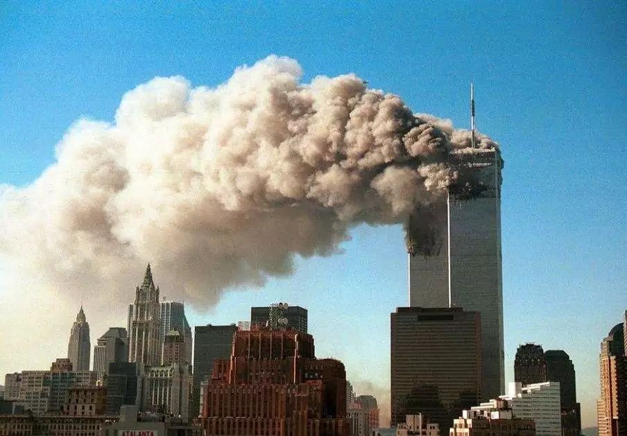 (图为“9·11”事件中被劫持飞机撞击的世贸大楼)